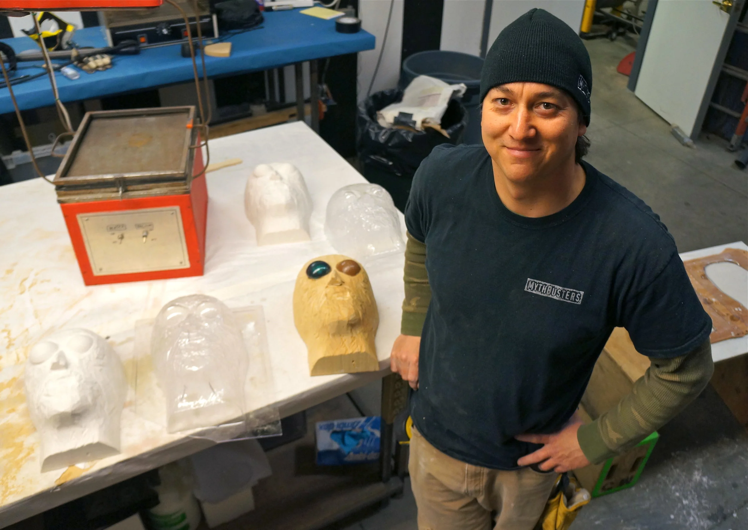 “Stone” pedestal I carved out of foam for our Indiana Jones episode. Replica of the one from the movie.